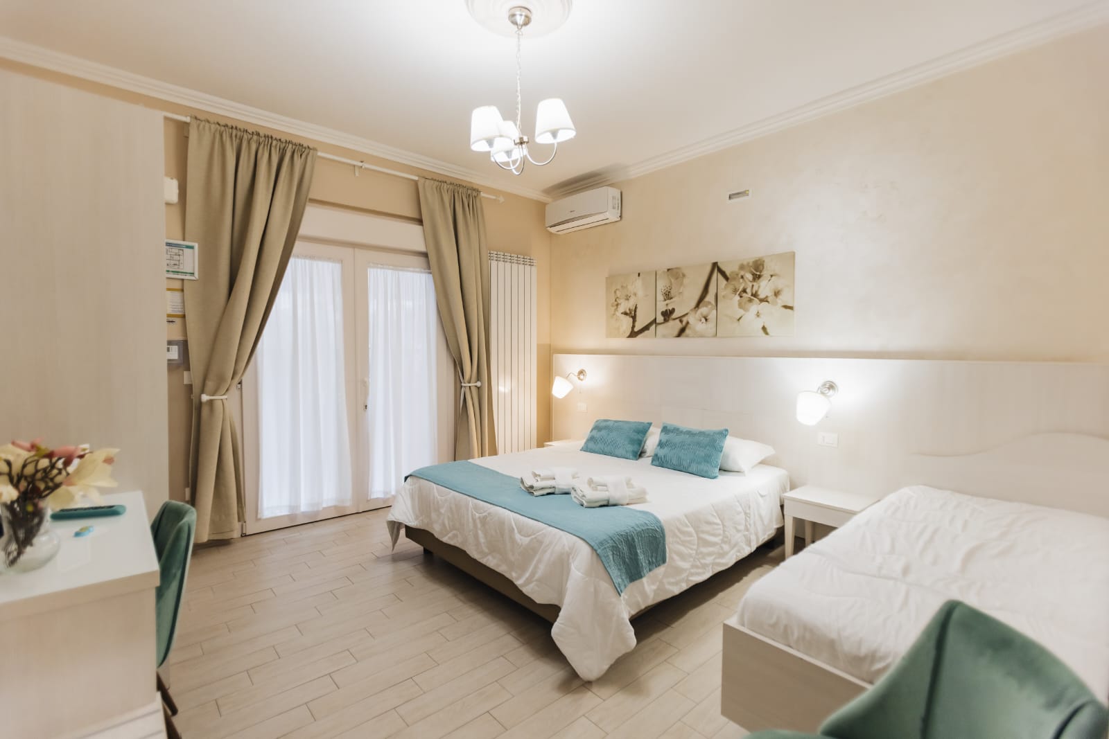 Le nostre camere sono tutte dotate di riscaldamento autonomo, aria condizionata, connessione Wi-Fi, frigo, bagno privato e accesso esterno privato.